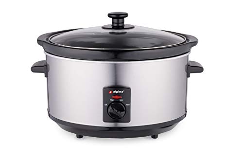 Alpina Slow Cooker - Schongarer - 3,5 Liter - Keramik-Innenbehälter - 3 Heizstufen - Edelstahl