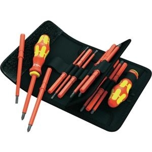 Umfassendes Set mit 15 VDE-Wechselklingen, geprüft für sicheres Arbeiten bei 10.000 Volt.