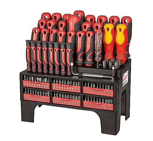 WALTER XXL Schraubendreher und Bit Set 100-tlg. effizient und handlichKreuzschlitz, Schlitz, Torx und Sechskant | inkl. Phasenprüfer & VDE Schraubendreher | stabile und kompakte Aufbewahrung, Chrom-Vanadium Stahl