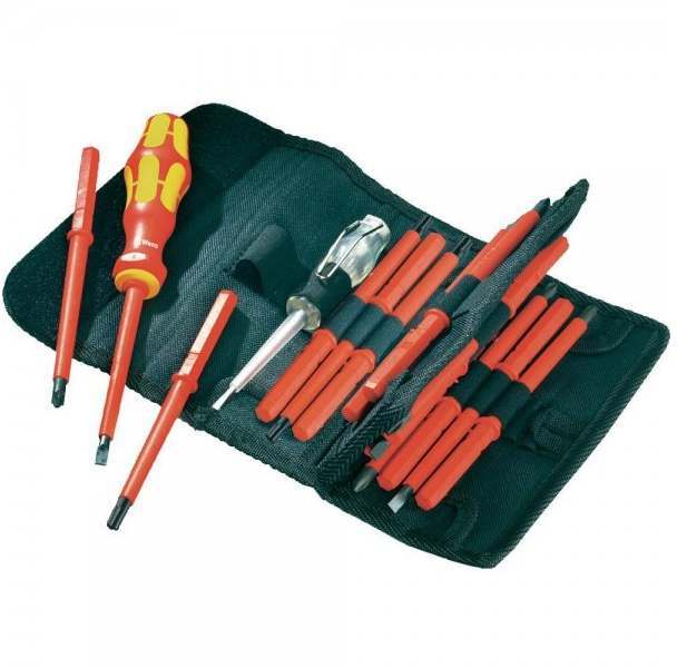 VDE-isolierte Wechselklingen in robuster Tasche, ideal für Elektriker mit hohem Sicherheitsstandard.