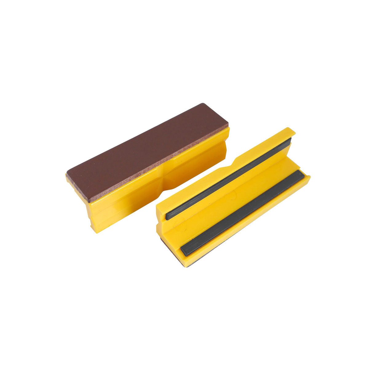 • Der Schraubstock von BERNSTEIN TOOLS FOR ELECTRONICS verfügt über Kunststoff-Schonbacken mit doppelter Magnetleiste, die sich ideal an Stahlbacken anpassen