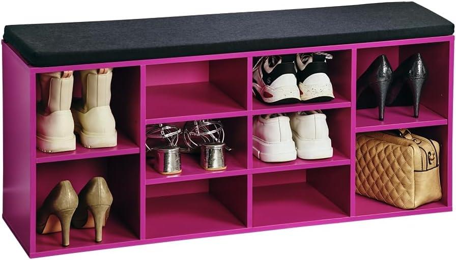 KESPER Schuhschrank / Sitzbank 15984-13 in pink mit Sitzkissen - die Praktische Sitzgelegenheit zum Aufbewahren und Anziehen. Platz für 10 Paar Schuhe. Ideal für den Flur! Pflegehinweis: Handreinigung. Maße (BxTxH): ca. 103,5 x 29,5 x 48 cm. Tragkraft bis 150 kg. Farbe: pink, schwarz. Lieferung: Demontiert.