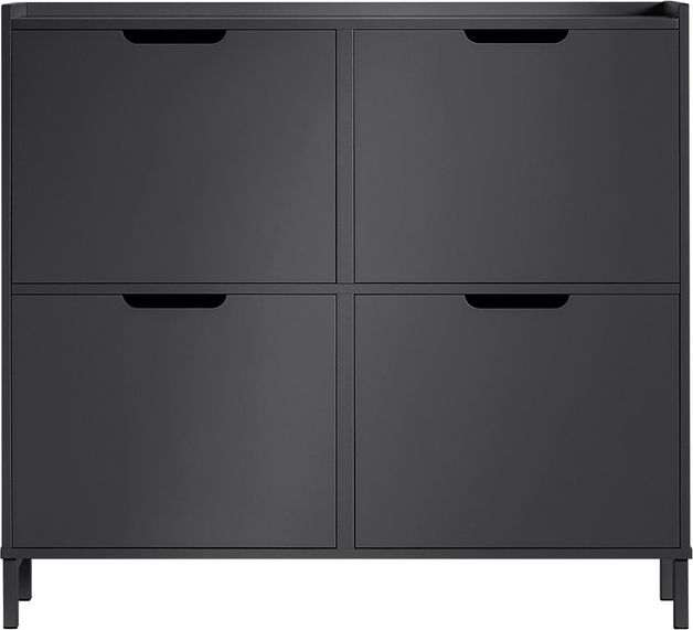 Der SoBuy FSR100-SCH Schuhkipper bietet mit seinen 4 Klappen und 8 Ablageflächen eine praktische Lösung zur Aufbewahrung Ihrer Schuhe. Mit einer Höhe von 90 cm, einer Breite von 100 cm und einer Tiefe von nur 19 cm ist er ideal für schmale Eingangsbereiche geeignet. Die stabile Konstruktion und der Kippschutz sorgen für zusätzliche Sicherheit. **Highlights** - 4 Klappen für eine große Auswahl an Schuhen - Schmaler Schuhschrank mit nur 19 cm Tiefe - Stabile Konstruktion für sicheren Stand - Kippschutz zur Wandbefestigung für erhöhte Stabilität - Belastbarkeit bis 60 kg **Produkteigenschaften** - Abmessungen: BHT ca. 100 x 90 x 19 cm - Gewicht: ca. 22,95 kg - Material: MDF (E1) / Metall, schwarz lackiert - Paketmaße: 112 x 16 x 44 cm