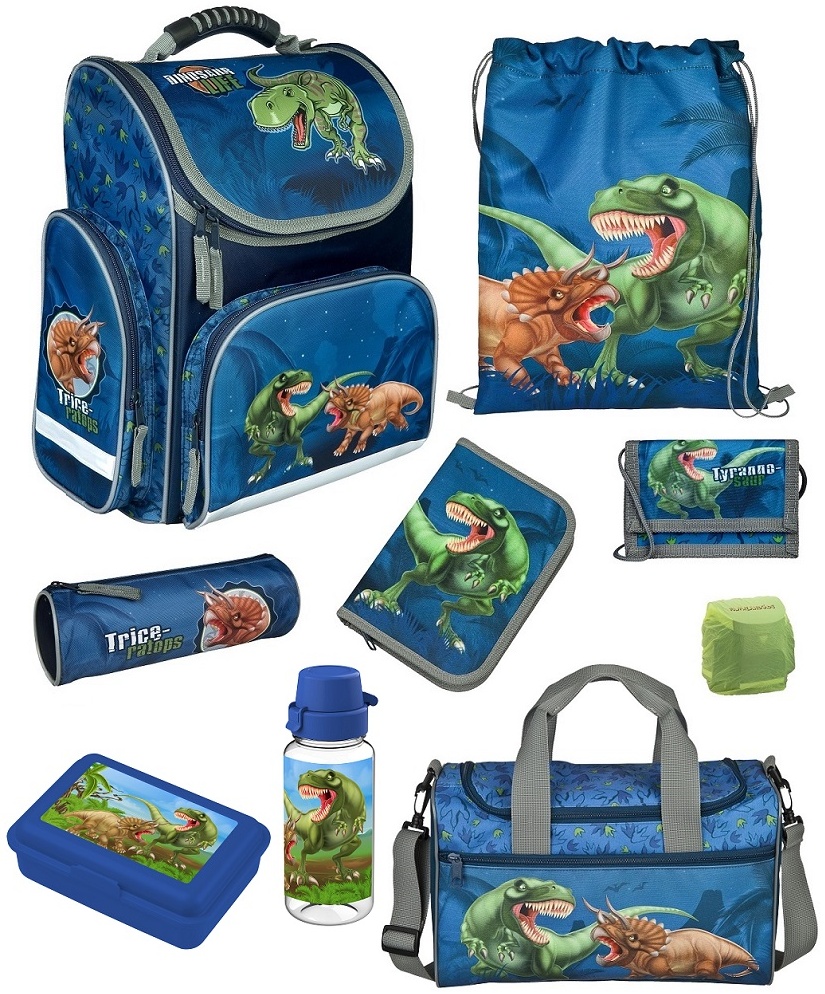 | Name | DINOSAURIER Schulranzen Set 9-teilig Modell Clou Ranzen 1. Klasse mit Sporttasche |