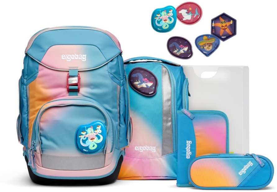 - neu in 2023: Jetzt mit festen Seitentaschen und vollständig überarbeitet - Höhenverstellbares „Your-Size-System“ - Einfaches Auffädeln der Brustgurte - Tasche für Busticket oder Kleinigkeiten am Beckengurt - PFC-freie Beschichtung - Aus 36 recycelten PET-Flaschen (0,5 l) **Der Schulranzen ergobag pack UrlaubsfieBär Special Edition – mit einzigartigem Farbverlauf** Der Schulranzen ergobag pack UrlaubsfieBär kombiniert die Funktionalität eines Schulranzens mit dem Ergonomiekonzept moderner Trekkingrucksäcke. Die Schultergurte lassen sich ganz einfach auf die Größe Ihres Kindes einstellen und der weich gepolsterte Beckengurt verteilt das Gewicht des befüllten ergobag pack UrlaubsfieBär von den Schultern Ihres Kindes auf die Hüftknochen. Auch ein höhenverstellbarer Brustgurt, der verhindert, dass beim Spielen die Schultergurte verrutschen, ist Bestandteil des ergobag pack UrlaubsfieBär. Damit Ihr Kind im Straßenverkehr gut gesehen wird, verfügt der Schulranzen an ausgewählten Stellen über Reflektormaterial, welches auftreffendes Licht zurückwirft. Optional kann der ergobag auch mit einem Sicherheitsset oder Seitentaschen-Set ausgestattet werden. Der ergobag pack wurde vollständig überarbeitet. So wurden nicht nur feste Seitentaschen hinzugefügt sondern auch der Deckel ist neu und stabiler geworden und hat eine Tasche im Inneren.