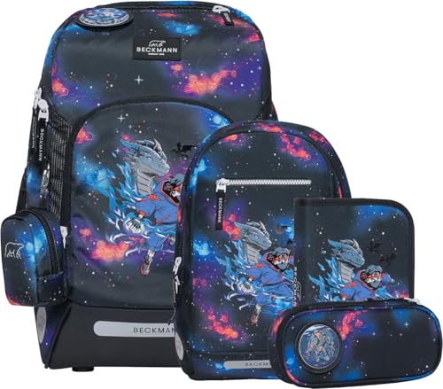 Beckmann Schulranzen-Set Active Air FLX Ninja Elements6-teilig, Grundschule, inkl. Regenüberzug, 20-25L, Black, Norwegische Qualität, Ergonomisches Design, 4 Jahre Garantie
