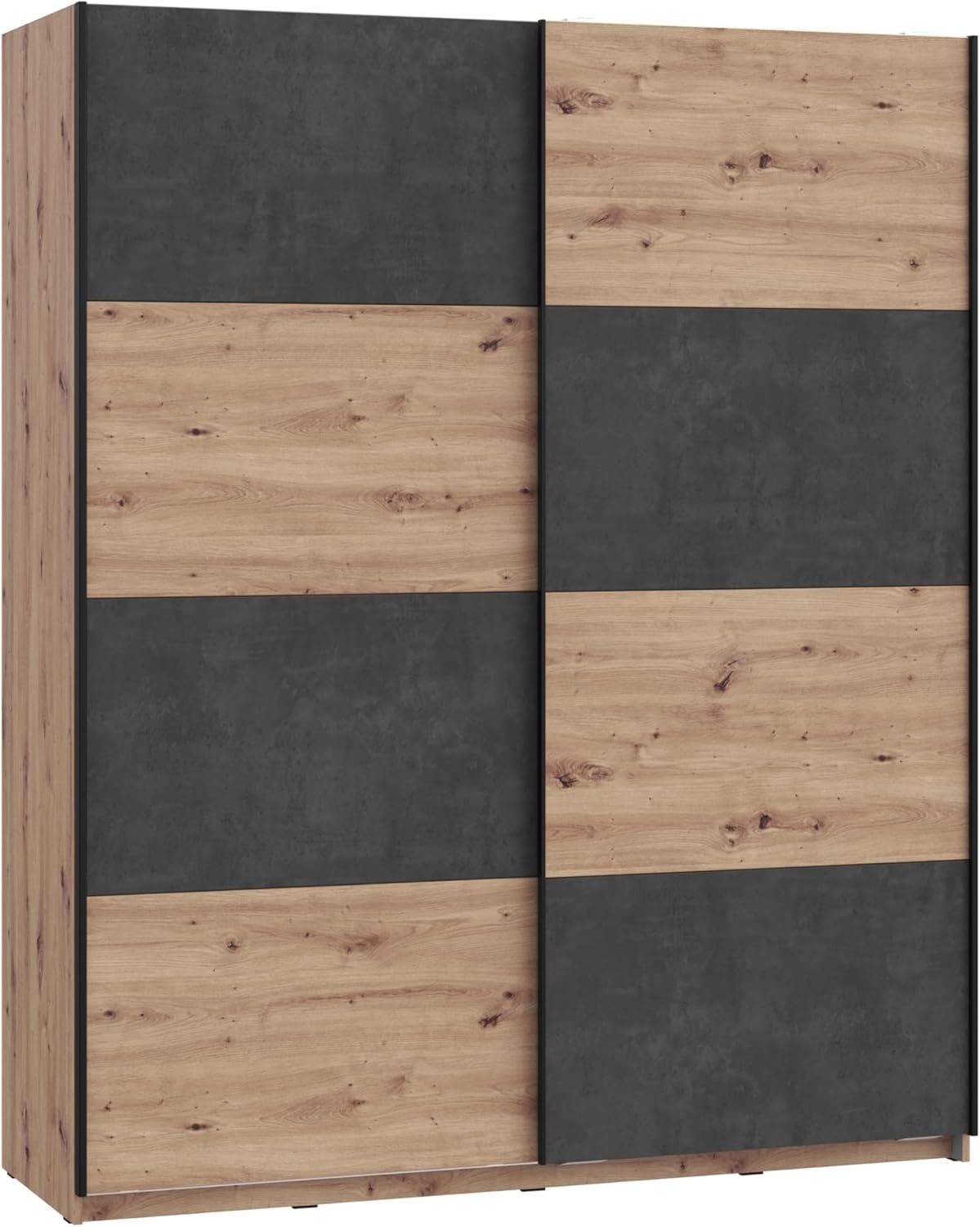 | Name | FORTE Raven Schrank 170, Kleiderschrank, Schwebetürenschrank Industrial Schlafzimmer Jugendzimmer, 2-türig, Holzdekor: Artisan Eiche/Betonoptik Dunkelgrau, 170 cm breit x 210 cm hoch x 61 cm tief |