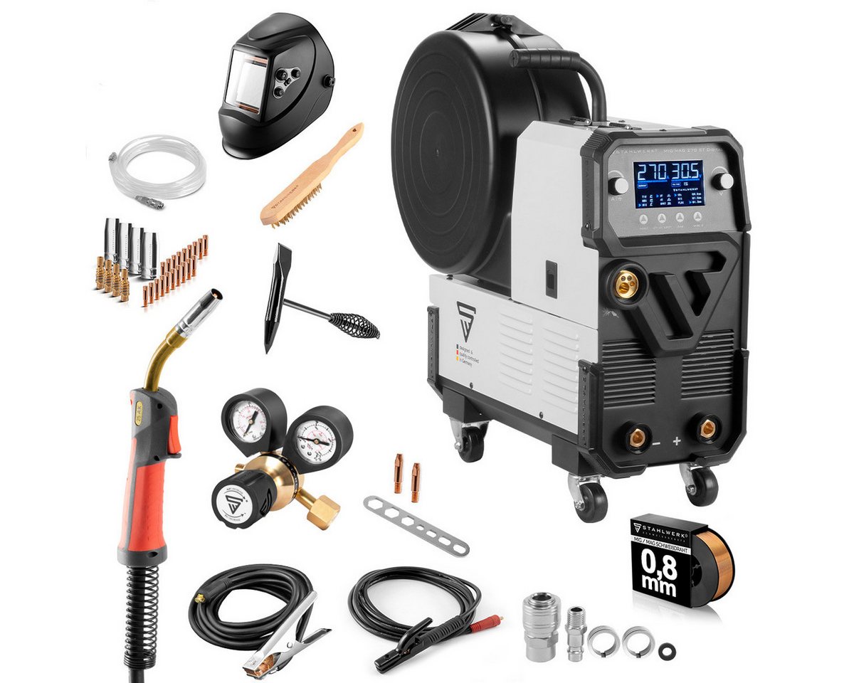 STAHLWERK Schutzgasschweißgerät MIG MAG 270 Digital IGBT40 - 270 A, Vollausstattung 4-in-1 Schutzgas-Schweißgerät, Inverter mit 270 A, schwarz