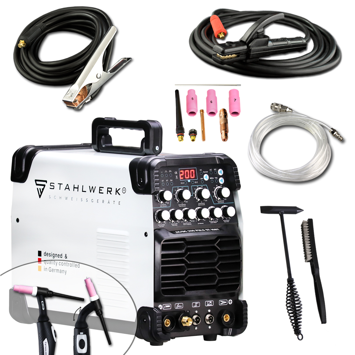 Das SCHWEIßGERÄT STAHLWERK AC/DC WIG 200 PULS ST bietet eine Vielzahl von Vorteilen für professionelle Schweißer und Heimwerker. Mit einer guten Verpackung und einem wertigen Eindruck überzeugt das Gerät bereits beim Auspacken. Dank passender Anschlüsse, insbesondere den Dinse Anschlüssen, ist die Handhabung einfach und unkompliziert. Die vielseitigen Schweißfunktionen ermöglichen sowohl Elektroden- als auch WIG-Schweißen in hoher Qualität.