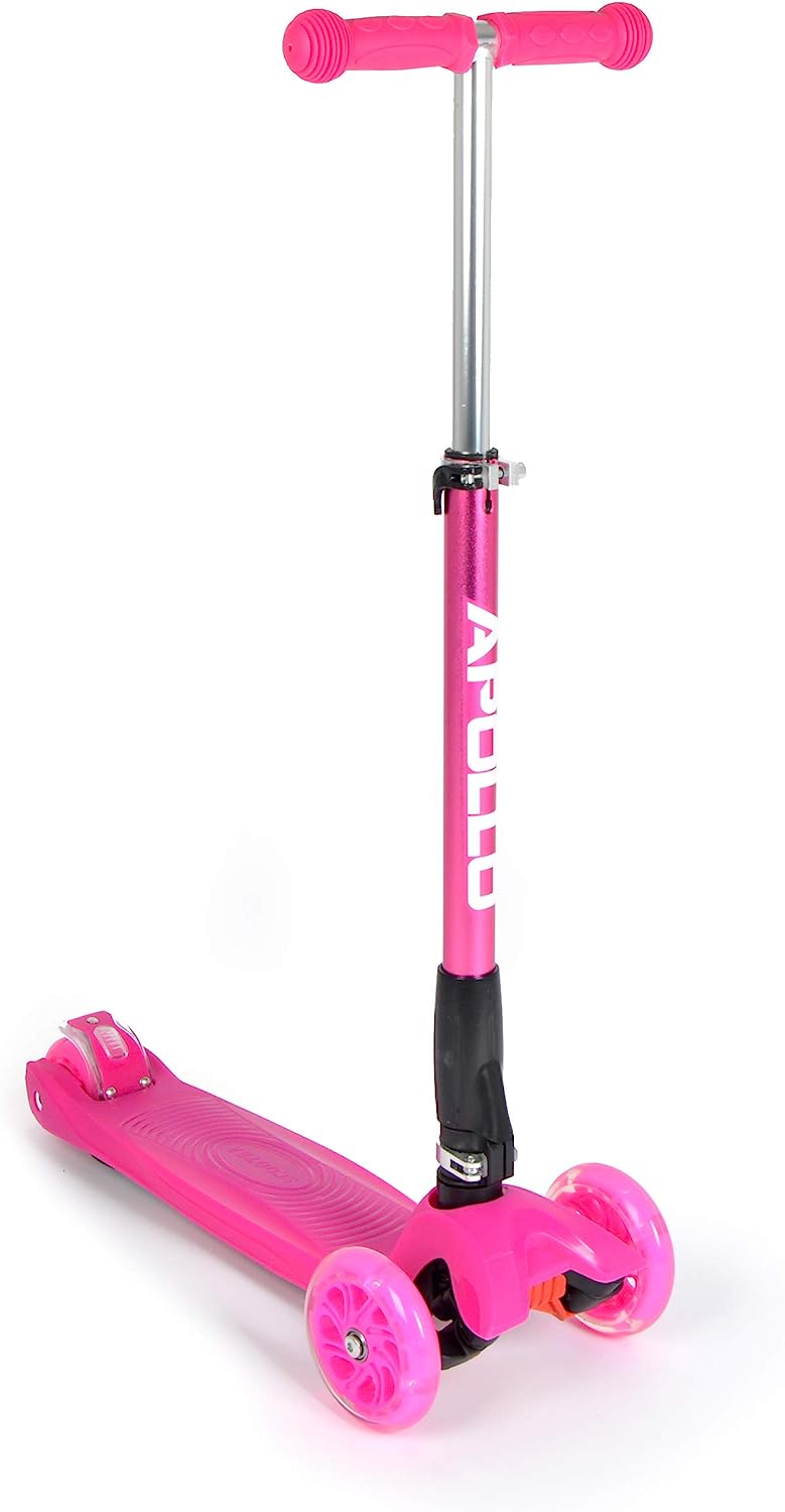 Der Apollo Fun-Scooter Kids Whiz LED Roller ist ein gut verarbeiteter Roller mit tollen Farben und leuchtenden Rädern. Er ist zusammenklappbar und bietet guten Fahrspaß. Einige Nutzer berichten jedoch von Problemen mit der Stabilität der Stange beim Fahren und Bremsen.