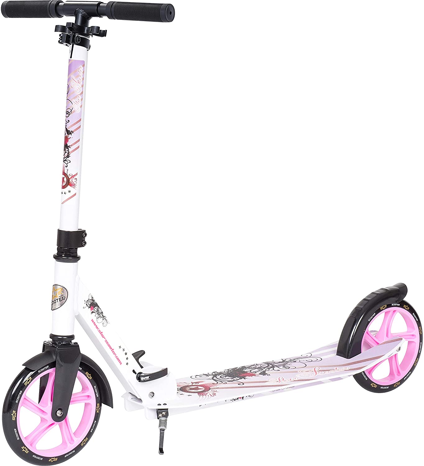 Dieses Modell überzeugt durch seine hochwertige Verarbeitung und bietet ein großes Trittbrett, das einen bequemen Stand ermöglicht. Die große Räder sorgen für eine bessere Fahrbarkeit, auch auf unebenem Terrain. Zudem lässt sich der Roller einfach zusammenklappen und tragen, was ihn besonders praktisch macht. Der ausziehbare Lenker sorgt dafür, dass jeder Nutzer eine angenehme Fahrposition finden kann.