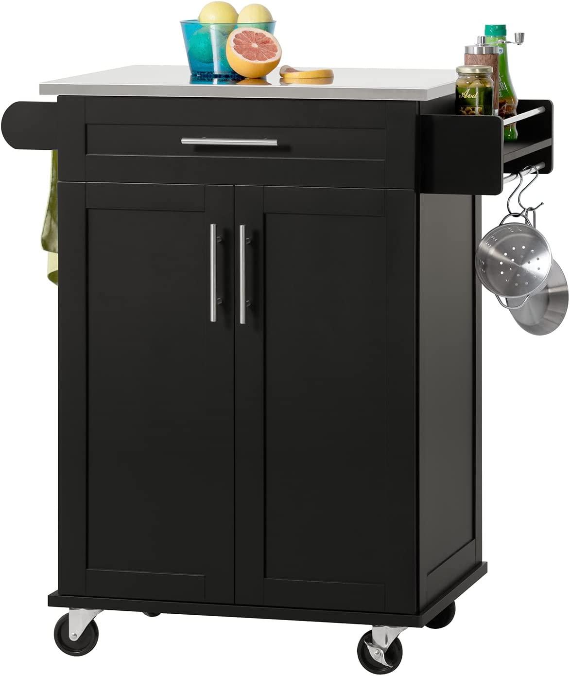 | Name | SoBuy FKW110-SCH Küchenwagen Servierwagen Beistellwagen Rollwagen mit Tür und Schublade Getränkewagen fürs Büro schwarz BHT ca. : 80 x 90 x 46 cm |