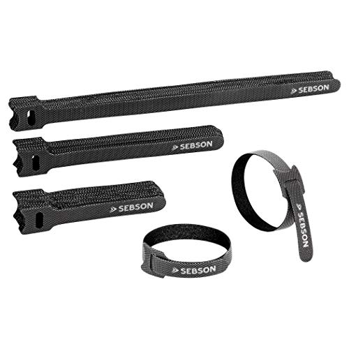 SEBSON Klettband Kabelbinder wiederverschließbar 50er Set - 12mm Breite; 25cm/ 15cm/ 10cm Länge - Klettband schwarzvariabel verschließbar