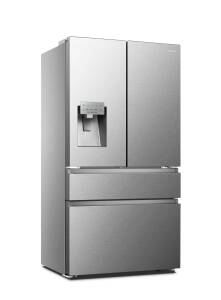Der Hisense French-Door-Kühlschrank bietet modernes und elegantes Design sowie eine praktische French Door-Konstruktion, die einen bequemen Zugriff ermöglicht. Die einfache und benutzerfreundliche Bedienung macht die Nutzung des Kühlschranks besonders angenehm. Zudem verfügt das Gerät über einen integrierten Wasserspender und Eiswürfelbereiter, die sich als äußerst praktisch erweisen.