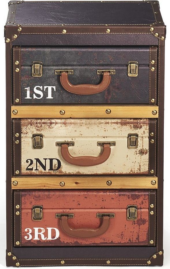 Dekorative Kommode im angesagten Retro-Look von Kobolo. Mit drei Fächern bietet das Kofferregal ausreichend Platz für Kleinteile und wird zum Blickfang in jedem Raum. Die Schubladen laufen auf Eisenschienen, was ein leichtes Öffnen und Schließen ermöglicht. Das Regal wird bereits zusammengebaut geliefert, sodass keine Montage erforderlich ist. **Highlights** - Retro-Look: Verleiht jedem Raum eine stilvolle Note. - Drei Fächer: Bietet ausreichend Stauraum für Kleinteile. - Eisenschienen: Sorgen für ein leichtes Öffnen und Schließen der Schubladen. - Zusammengebaut geliefert: Keine Montage notwendig. - Familienunternehmen: Qualität aus Oberfranken. **Produkteigenschaften** - Maße (LxBxH): 41 x 30 x 64 cm - Material: Holz - Einsatzmöglichkeiten: Esszimmer, Wohnzimmer, Flur **Lieferumfang** - 1x Kofferregal mit 3 Fächern - Keine weiteren Produkte im Lieferumfang enthalten