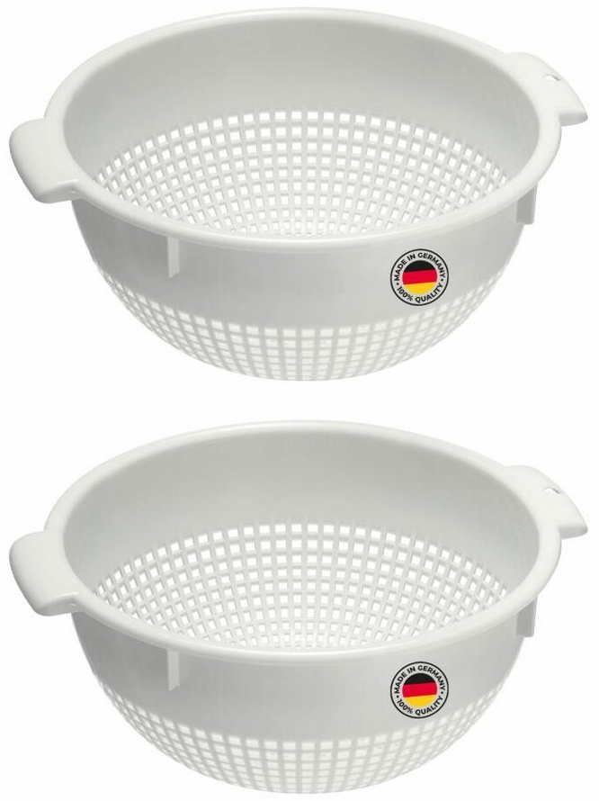 | Name | WESTMARK Seiher 2 Stk, groß, mit 2 Griffmulden und 4 Aufsatzrasten zum Waschen und, PE, spülmaschinengeeignet, Made in Germany |