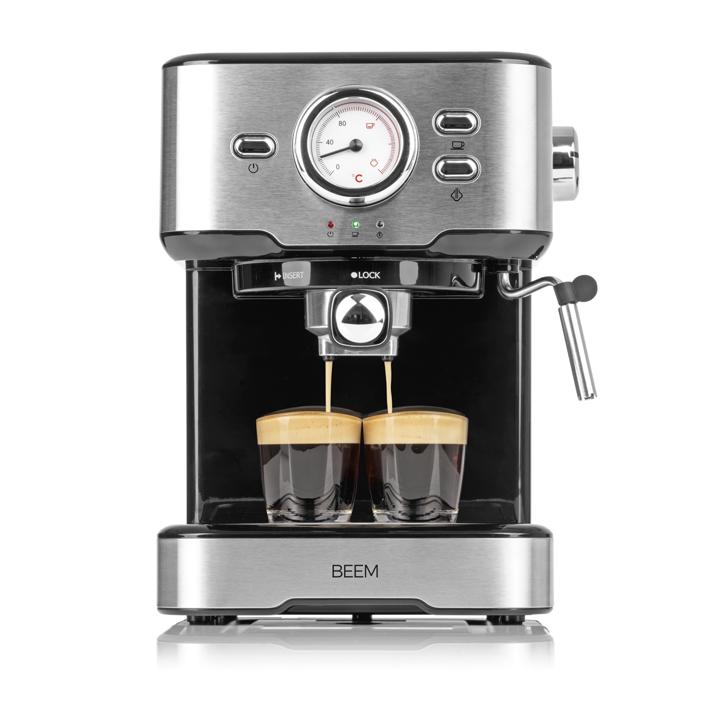 Die BEEM ESPRESSO-SELECT Espresso-Siebträgermaschine mit 15 bar bietet Ihnen die Möglichkeit, zu Hause einen intensiven Espressogenuss zu erleben. Die Maschine ist preiswert, kompakt und heizt schnell auf. Das analoge Design und die individuelle Einstellung der durchlaufenden Wassermenge ermöglichen Ihnen eine optimale Anpassung an Ihren persönlichen Geschmack.