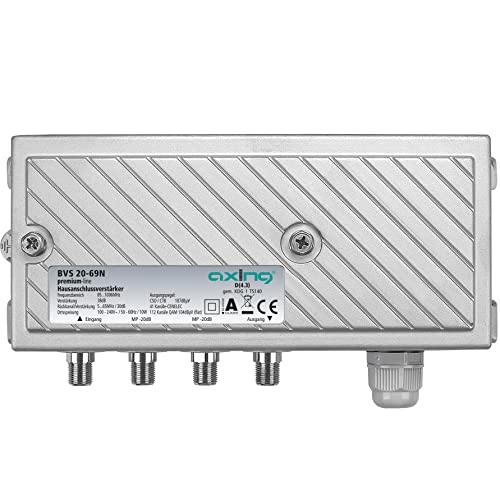 • Der Axing BVS 20-69N ist ein leistungsfähiger Hausanschlussverstärker für größere Verteilungen, z.B. in Mehrfamilienhäusern und Wohnanlagen