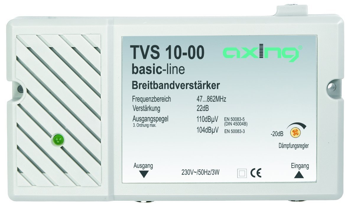 Der Breitband-Verstärker von Axing bietet eine einfache Installation und verbessert in einigen Fällen die Signalqualität für Kabelfernsehen oder Antennen DVB-T2 HD UKW DAB+. Er ist kompatibel mit verschiedenen Anschlüssen und Geräten, was zu einem stabilen Fernsehbild in einigen Haushalten führt.