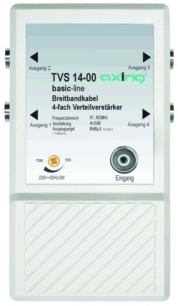 Der Axing 4-fach Verteilverstärker bietet eine signifikante Verbesserung der Signalstärke und Bildqualität für den Empfang von digitalen Fernseh- und Radiosendern. Mit seinen 4 Antennenausgängen ermöglicht er eine einfache Installation, die besonders hilfreich bei alten Kabeln und schlechtem Empfang ist.