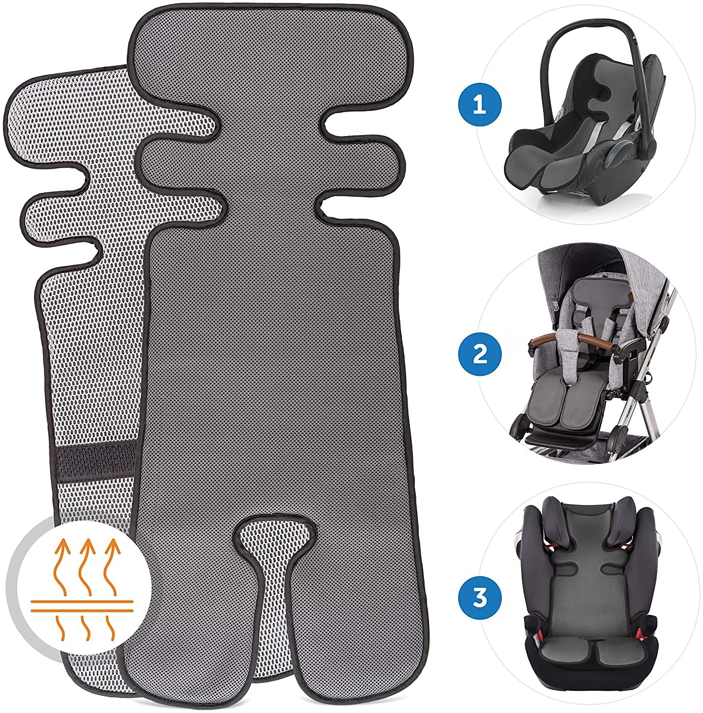 | Name | Atmungsaktive Sommer Sitzeinlage, Sitzauflage für Kinderwagen, Buggy und Kindersitz - Kühlt und schützt den Sitzbezug vor Flecken - Grau |