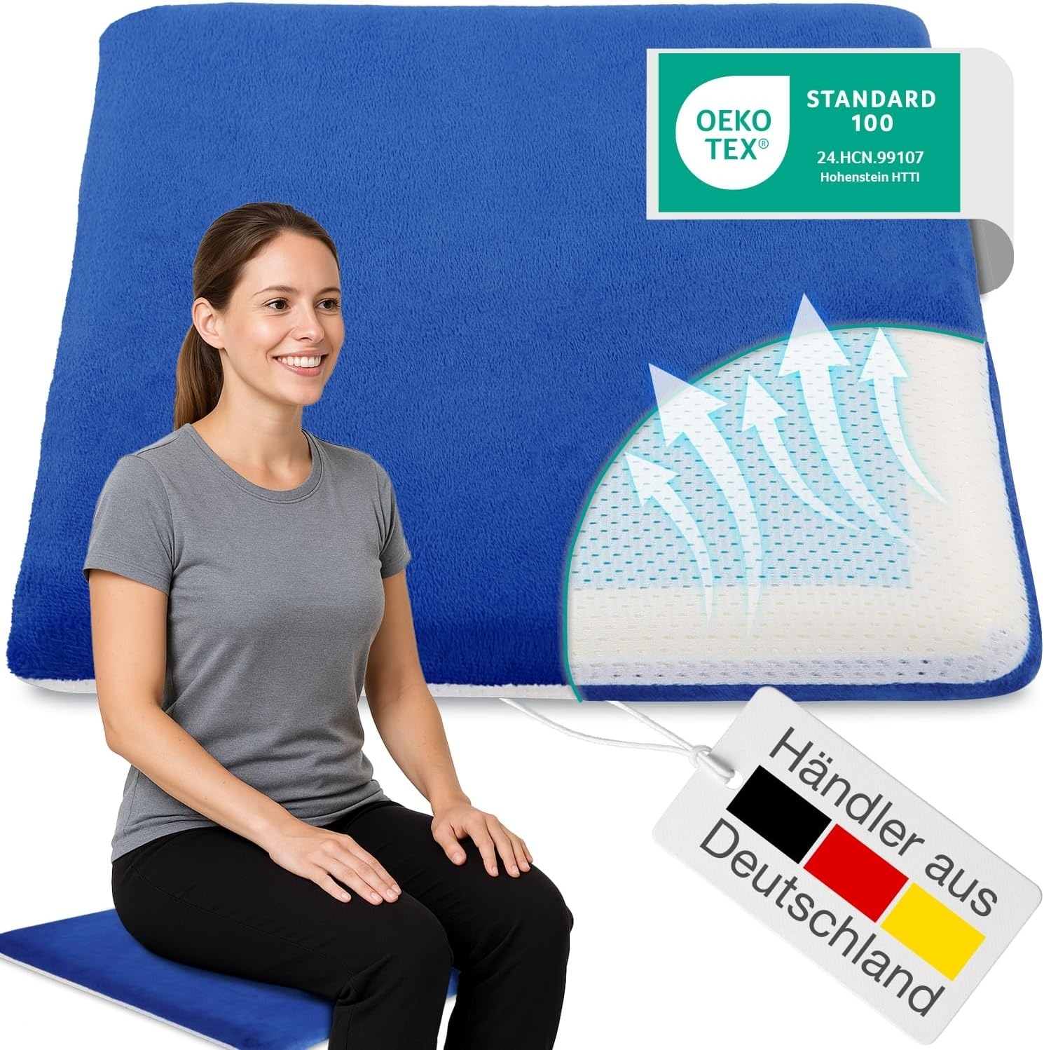 | Beschreibung | Druckentlastend, klimaregulierend und komfortabel – das sind die Eigenschaften dieses Visko Gel Sitzkissens. Für jedes Gewicht bietet es eine angenehm kühle Sitzfläche im Sommer. Waschbar ist es auch für Allergiker optimal geeignet. Sie wünschen sich mehr Bequemlichkeit und Komfort beim Sitzen? Der viskoelastische Schaumstoff zusammen mit der Gelfüllung passt sich Ihrem Gesäß konturgenau an. Sie sitzen weich und herrlich bequem – auch bei langem Sitzen. **Herrliches Sitzgefühl an warmen Tagen auf klimaregulierendem Gel** Denn die Gelfüllung ist klimaregulierend und sorgt für eine angenehm kühle Sitzfläche – eine Wohltat an warmen Tagen im Sommer. Unterstützt wird sie dabei von dem ebenfalls atmungsaktiven Bezug aus 3D-Gewebe. Dieser sorgt für eine ideale Belüftung und lässt die Wärme entweichen, so dass es zu keinem Hitzestau kommt. Ideal auch für Allergiker. Der Bezug lässt sich per Reißverschluss abnehmen und bei 30° C waschen. |