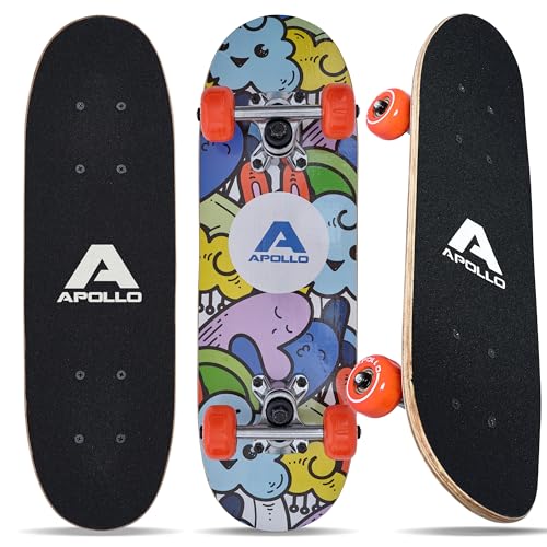 Das Apollo Kinder Skateboard wird als gute Wahl für Anfänger beschrieben, mit einem ansprechenden Design und hochwertigen Materialien. Es ist leicht und gut ausbalanciert, jedoch gibt es Bedenken hinsichtlich der Qualität der Trucks, die als unbeweglich und laut empfunden werden.