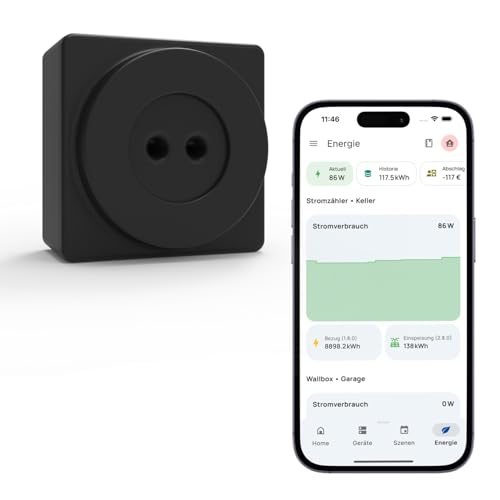 Der everHome EcoTracker IR ist ein benutzerfreundlicher Stromzähler-Sensor, der eine einfache Installation und präzise Messwerte bietet. Er ermöglicht das Live-Tracking von Stromverbrauch und PV-Ertrag über eine App, die eine übersichtliche Darstellung der Daten liefert. Das Gerät ist kompatibel mit modernen EHZ-Zählern und eignet sich gut zur Steuerung von Geräten. Die Datenspeicherung ist unbegrenzt, und es fallen keine monatlichen Gebühren an.