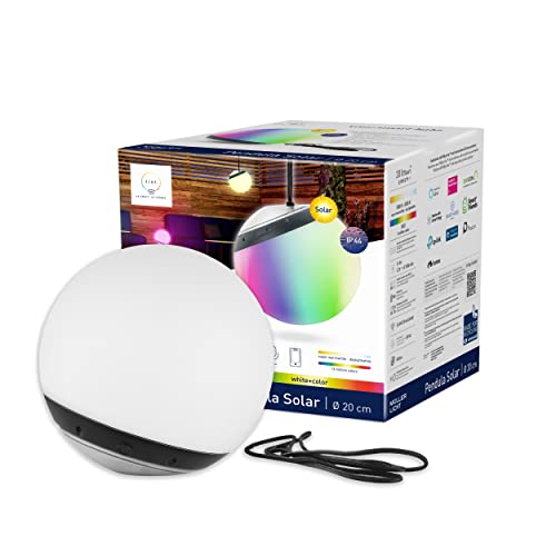 tint Smarte Outdoor LED Hängekugel PENDULA SOLAR – Steuerbar per Alexa oder Fernbedienung – Leuchtkugel mit weißem (1800-6500 K) und farbigem Licht RGB – Spritzwassergeschützt (IP44) – Ø 20 cm