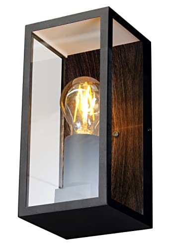 Außenwandleuchte Karo in Holzoptik/Schwarzeckige Wandleuchte mit E27-Fassungen, max. 60 Watt, Außenleuchte mit Lichteffekt für den Eingangsbereich, Holz/Schwarz