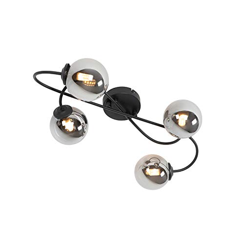 Qazqa - Landhaus I Vintage Moderne Deckenleuchte I Deckenlampe I Lampe I Leuchte schwarz 4-flammig-Licht mit Rauchglas - Athen I Wohnzimmer I Schlafzimmer - Länglich - LED geeignet G9