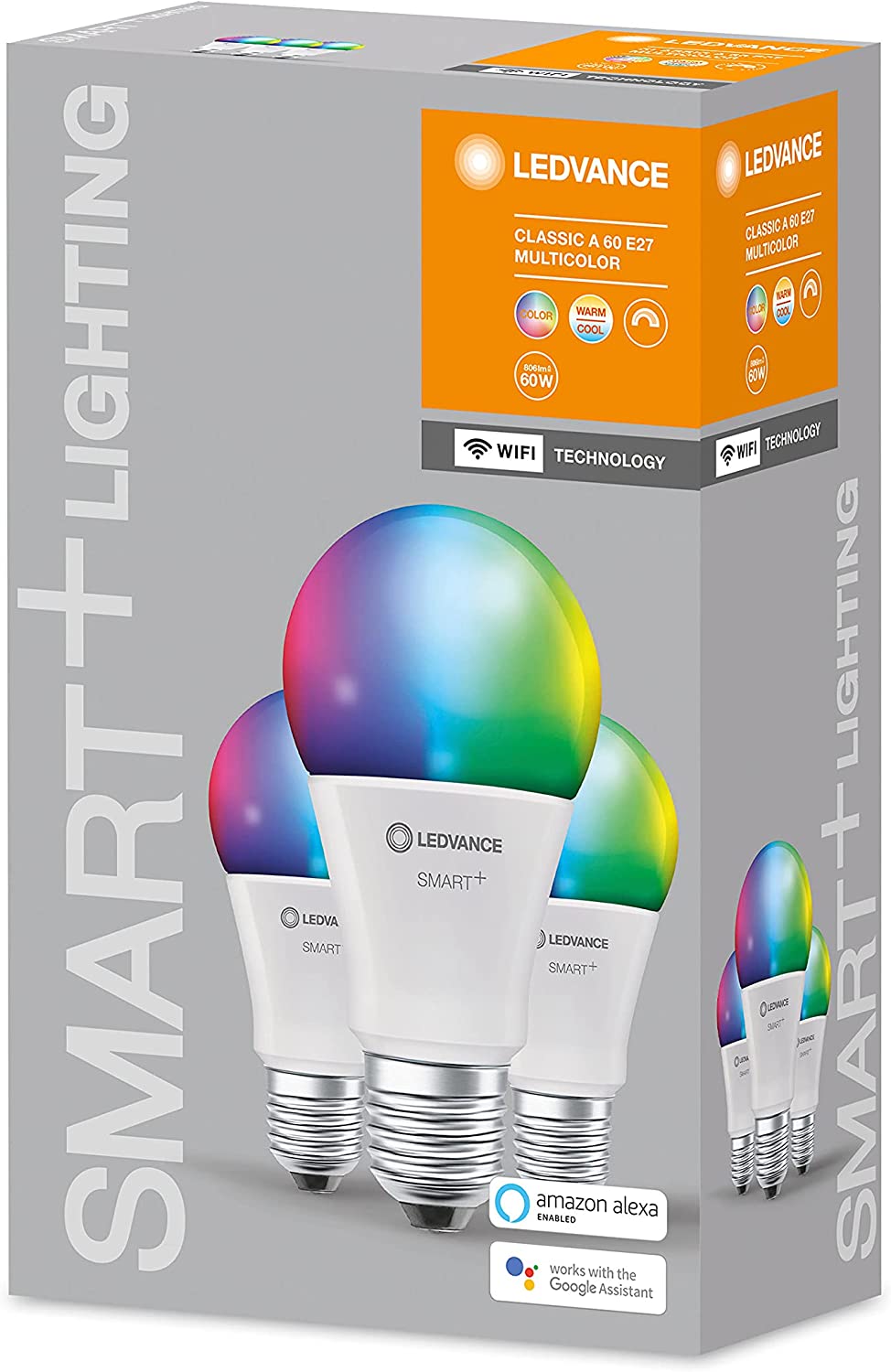 LEDVANCE SMART+ 3er Pack Classic E27 Leuchtmittel RGBW dimmbar 9W 2700-6500K