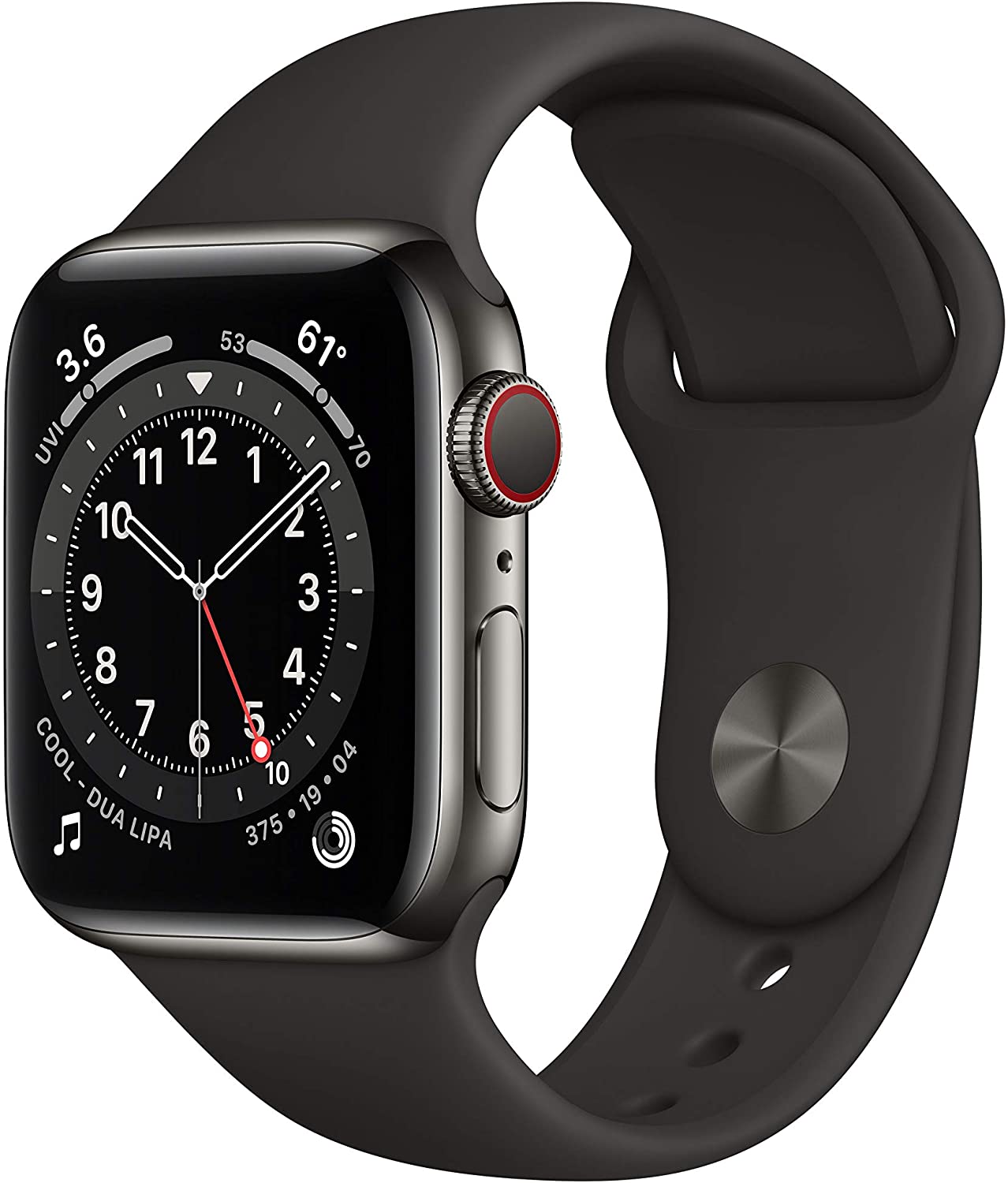 Die Apple Watch Series 6 präsentiert sich als eine der fortschrittlichsten Smartwatches auf dem Markt. Mit ihrem eleganten Edelstahlgehäuse in Graphit und dem sportlichen schwarzen Fluorelastomer-Armband ist sie nicht nur ein modisches Accessoire, sondern auch ein leistungsstarkes Gadget für Fitness- und Gesundheitsbewusste.