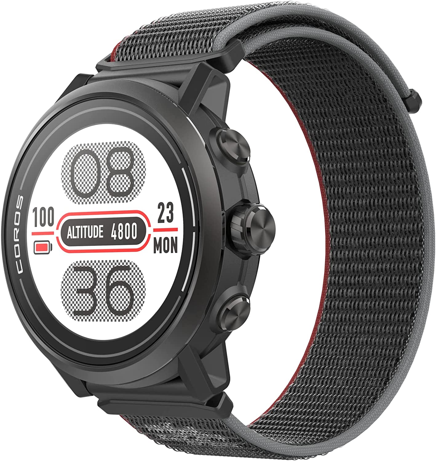 Die Coros Apex 2 besticht durch ihr robustes Design. Mit einem 43 mm großen Titan-Gehäuse und einem 1,2 Zoll Saphir-Display ist sie sowohl langlebig als auch ästhetisch ansprechend. Das Nylonarmband mit Klettverschluss sorgt für einen bequemen Sitz und ist in der Farbe schwarz gehalten, was ihr ein sportliches und zeitloses Aussehen verleiht. Tester von TechRadar haben jedoch angemerkt, dass die Uhr im Vergleich zu ihrem teureren Pendant, der Apex 2 Pro, etwas "billiger" wirkt.