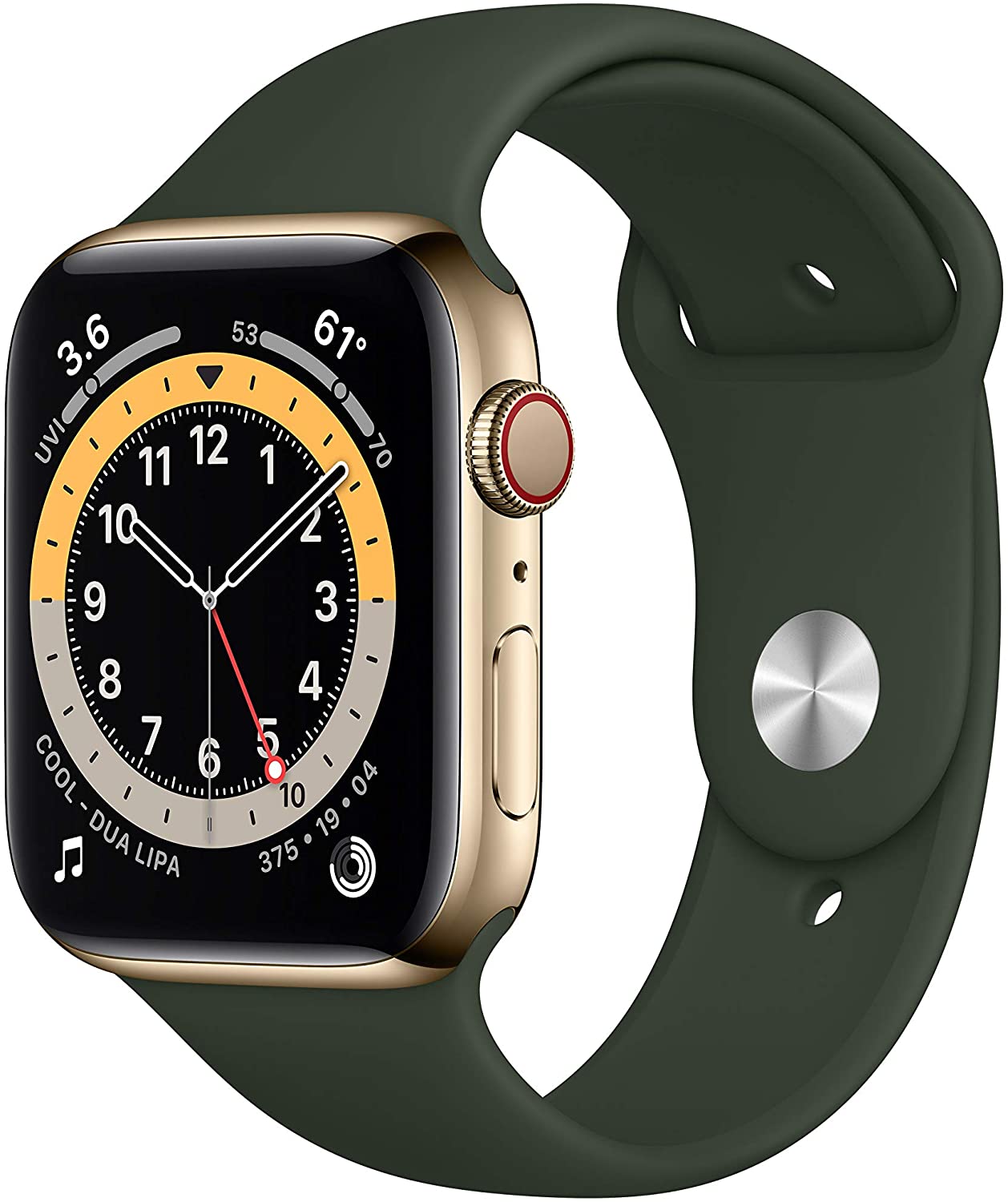 Die Apple Watch Series 6 präsentiert sich in einem eleganten 44 mm Edelstahlgehäuse in Gold und einem sportlichen Zyperngrünen Fluorelastomerarmband. Die Kombination aus robustem Saphirglas und Edelstahl sorgt für Langlebigkeit und Widerstandsfähigkeit, während das geringe Gewicht von 47,1 g beim Sport kaum spürbar ist. Diese Eigenschaften machen die Uhr zu einem stilvollen Begleiter im Alltag, der sich sowohl im Büro als auch in der Freizeit gut macht. Einige Nutzer berichten jedoch von Problemen mit der Wasserdichtigkeit, was in bestimmten Situationen nachteilig sein kann.