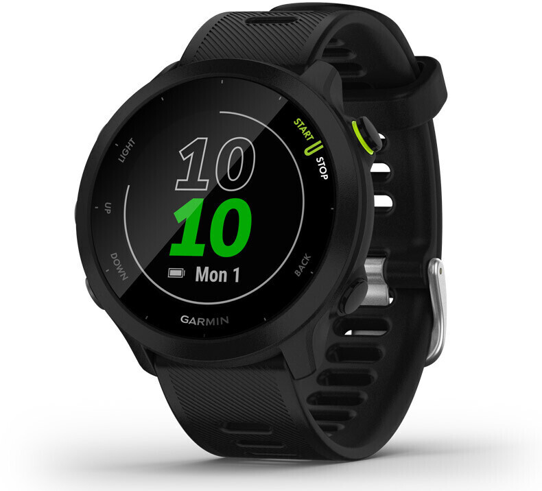 Die Garmin Forerunner 55 bietet eine 24/7 Herzfrequenzmessung und überwacht den VO2Max, um die Trainingsintensität effektiv zu verfolgen. Vorinstallierte Sportapps für Aktivitäten wie Laufen, Radfahren und HIIT ermöglichen eine vielseitige Nutzung. Die Uhr ist mit GPS und Glonass ausgestattet, was präzise Standortdaten liefert.
