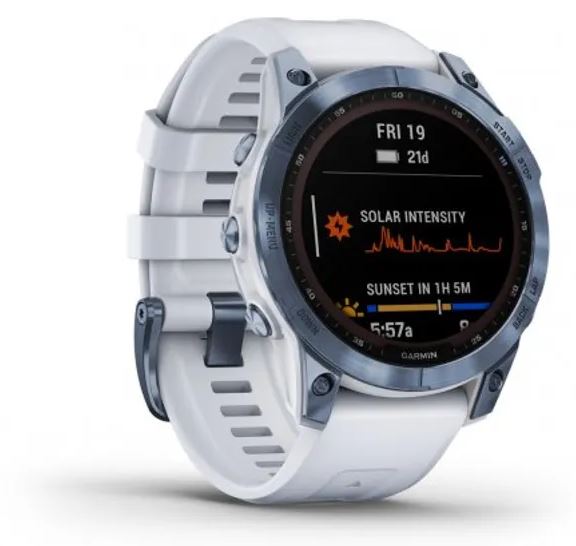 Garmin fenix 7 Sapphire Solar Smartwatch GPSUnisex, 47mm, Titangehäuse, Silikonarmband, Blau/Steinweiß (010-02540-25)
