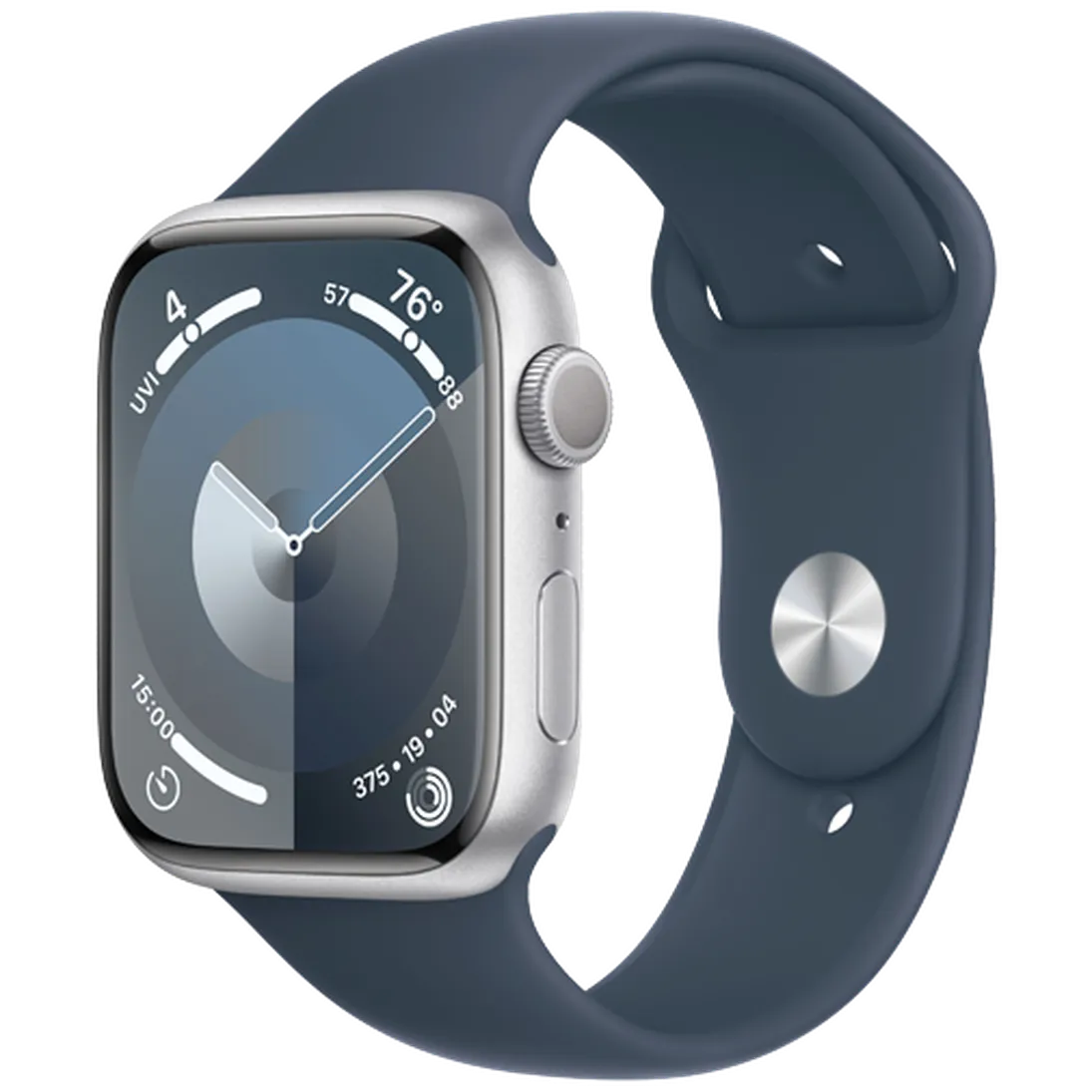 Die Apple Watch Series 9 kommt in einem 45 mm Aluminiumgehäuse in Silber, das sowohl leicht als auch robust ist. Mit einem Gewicht von nur 32 g ist die Uhr angenehm zu tragen, selbst über längere Zeiträume. Das 1,61 Zoll große OLED Retina Display mit einer Auflösung von 352 x 430 Pixel sorgt für eine klare und lebendige Darstellung von Informationen. Nutzer schätzen das zeitlose Design, das sich gut für verschiedene Anlässe eignet, sei es im Alltag oder im Büro.