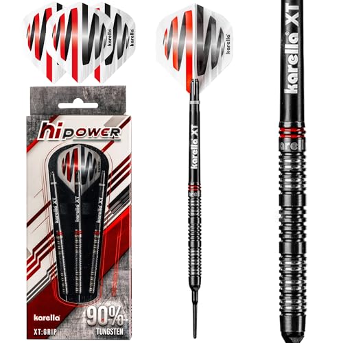 Karella HiPower 90% Tungsten Softdart18g, für elektronische Dartscheibe, 2BA Gewinde, 3 Dartpfeile mit Kunststoffspitze, Dartautomat, Wolfram, Profidart mit Flight und Shaft