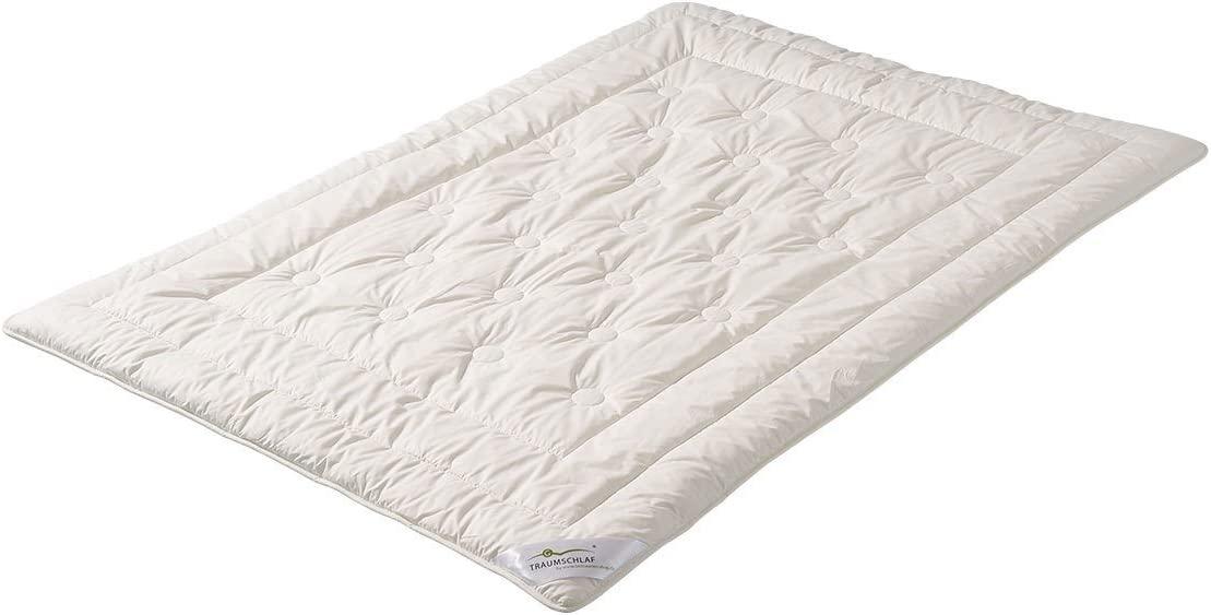 Traumschlaf Zirbe Sommerbett leicht. Bezug: KBA-Perkal 100% Baumwolle (Baumwolle aus kontrolliert biologischem Anbau)Füllung: 100% Merino Schurwolle aus kontrolliert biologischer Tierhaltung mit Zirbenholzspänen Lieferumfang: die abgebildeten Kissen sind dem Lieferumfang nicht enthalten!Verpackung: Papiertüte, waschbar bei 30°C im Wollwaschgang, made in Germany Zirbenholz:Die Zirbe wächst in den Alpen auf 1.500 bis 2.000 Metern Höhe. Diese robuste Holzart kann Frost bis zu -50°C überstehen und wird dabei bis zu 1.000 Jahre alt. Merino Schurwolleaus kontrolliert biologischer Tierhaltung Bietet guten Wärmerückhalt und hervorragende Feuchtigkeitsaufnahme. Sie kann bis zu 40% des Eigengewichts an Feuchtigkeit aufnehmen, ohne sich feucht anzufühlen. Die starke Kräuselung des Naturhaares macht die Füllung bauschig, sorgt für gute Wärmeisolierung und eine schnelle Abgabe der Feuchtigkeit an die Raumluft. Das in der Wolle enthaltene Lanolin schützt das Haar auf natürliche Weise vor Verschmutzung. KBT steht für artgerechte Tierhaltung- kein Einsatz von gentechnisch verändertem Futter- kein Einsatz von ertragssteigernden Mitteln, z.B. Hormone- starke Reglementierung von Arzneimitteln für Tiere