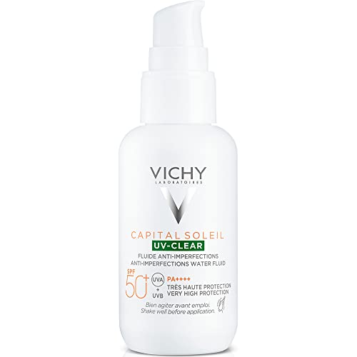 Das Vichy Capital Soleil UV-Clear Anti-Imperfections Fluid LSF 50+ bietet einen zuverlässigen Schutz vor schädlichen UV-Strahlen mit einem hohen Lichtschutzfaktor von 50+. Zusätzlich hilft es, Unreinheiten und Glanz zu reduzieren, während es die Haut mattiert. Die leichte Textur des Produkts zieht schnell ein und hinterlässt ein angenehmes Gefühl auf der Haut.