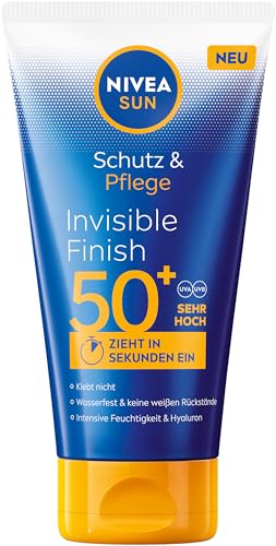 Nivea Sun Schutz & Pflege Invisible Finish überzeugt laut der Testerinnen und Tester mit starkem Sonnenschutz, angenehmer Anwendung und sicherer Zusammensetzung. Einziger Kritikpunkt bleibt die wenig transparente Kennzeichnung auf der Verpackung. – zusammengefasst durch die Testsieger.de-Redaktion