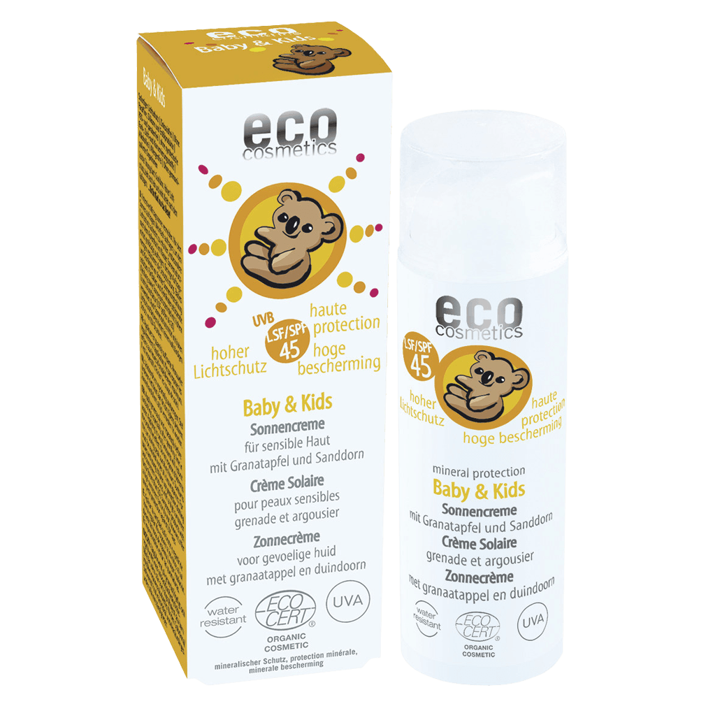 Die Sonnencreme bietet einen hohen Lichtschutzfaktor von 45, der effektiv vor schädlicher UV-Strahlung schützt. Sie enthält gute Inhaltsstoffe ohne bedenkliche Substanzen und verwendet mineralische UV-Filter, die eine sanfte Alternative zu chemischen Filtern darstellen. Dies macht sie besonders geeignet für empfindliche Hauttypen von Babys und Kindern. Zudem ist das Produkt wasserfest und hinterlässt keine Flecken auf der Kleidung.