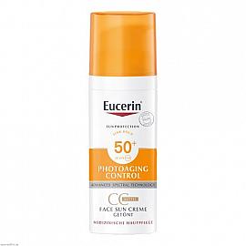 Die Eucerin Sonnenschutz Photoaging Control Face Sun CC Creme LSF 50 Sonnencreme bietet einen sanften Farbton und gleichzeitig einen hohen Schutz vor schädlichen UV-Strahlen. Die leichte Textur der Creme sorgt für ein angenehmes Auftragen und hilft dabei, die Haut zu entspannen. Zudem kann die Creme als Grundierung verwendet werden und eignet sich somit ideal als Make-up-Basis.