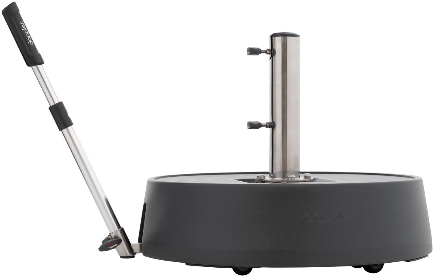 Der Doppler Rollsockel "Easy Move Switch" ist die neueste Innovation aus dem Hause Doppler. Mit einer Tragkraft von 50 kg eignet er sich ideal für Sonnenschirme bis zu einem Durchmesser von 300 cm. Dank der teleskopierbaren und abnehmbaren Zugstange lässt sich der Sockel mühelos auf der Terrasse bewegen. Ein besonderes Highlight ist die Möglichkeit, den Schirmsockel individuell zu gestalten. Wählen Sie aus 4 Dekorplatten die passende Optik für Ihren Stil aus. **Highlights** - Teleskopierbare und abnehmbare Zugstange für einfaches Bewegen des Sockels - Tragkraft von 50 kg für Sonnenschirme bis Ø 300 cm - Individualisierbare Sockeloptik mit 4 Dekorplatten zur Auswahl **Produkteigenschaften** - Tragkraft: 50 kg - Geeignet für Sonnenschirme bis Ø 300 cm - Teleskopierbare und abnehmbare Zugstange für einfaches Bewegen des Sockels - Optional individualisierbare Sockeloptik mit 4 Dekorplatten zur Auswahl **Lieferumfang** - Doppler Rollsockel "Easy Move Switch" ohne Dekorplatte