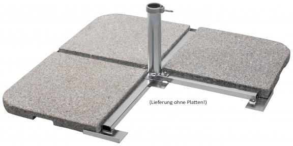 Der Schneider STABILER Platten-Ständer ist aus feuerverzinktem Stahl gefertigt und bietet eine extra schwere Konstruktion für einen stabilen Halt. Er ist für 55 mm Rohre geeignet und optimal für Gastronomieschirme bis 400 cm. Für die Verwendung werden Wegeplatten mit den Maßen 50 x 50 x 5 cm und einem Gewicht von je 30 kg empfohlen (Lieferung ohne Platten). **Highlights** - Hochwertige Gastro-Qualität - Feuerverzinkt für Langlebigkeit - Extra schwer für optimale Stabilität - Geeignet für 55 mm Rohr - Kompatibel mit Gastronomieschirmen bis 400 cm **Produkteigenschaften** - Material: Stahl, feuerverzinkt - Maße der Platten: 50 x 50 x 5 cm - Empfohlenes Plattengewicht: je 30 kg - Geeignet für Gastronomieschirme Jumbo und Quadro **Lieferumfang** - Schneider Plattenständer - Lieferung ohne Platten