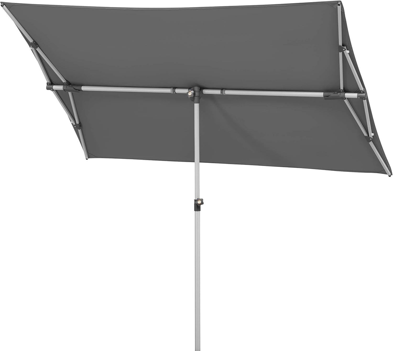 Der quadratische Sonnenschirm Novara (ca. 190x140 cm) in Anthrazit bietet flexible Einstellungsmöglichkeiten. Der Schirm kann in alle Richtungen gekippt, geschwenkt und geschoben werden, ohne Möbel umzustellen. Mit UV-Schutz 50+ und wasserabweisender, rostfreier Polyesterbespannung. Das pulverbeschichtete Alu/Stahl-Gestell ist zweiteilig (ca. 32 mm Ø) und leicht abnehmbar für Handwäsche. Gewicht: 5,08 kg. **Highlights** - Flexibles Multi-Talent: Schirm kann in alle Richtungen gekippt, geschwenkt und geschoben werden - UV-Schutz 50+: Schützt vor schädlicher UV-Strahlung - Rostfreies und pulverbeschichtetes Alu/Stahl-Gestell - Wasserabweisende und rottungsfeste Polyesterbespannung - Leicht abnehmbar für Handwäsche **Produkteigenschaften** - Farbe: Anthrazit - Maße: ca. 190x140 cm - Material Bespannung: 100 % Polyester - Stock zweiteilig ca. 32 mm Ø - Nur für den privaten Gebrauch im Außenbereich - Ohne Volant - Gewicht: 5,08 kg
