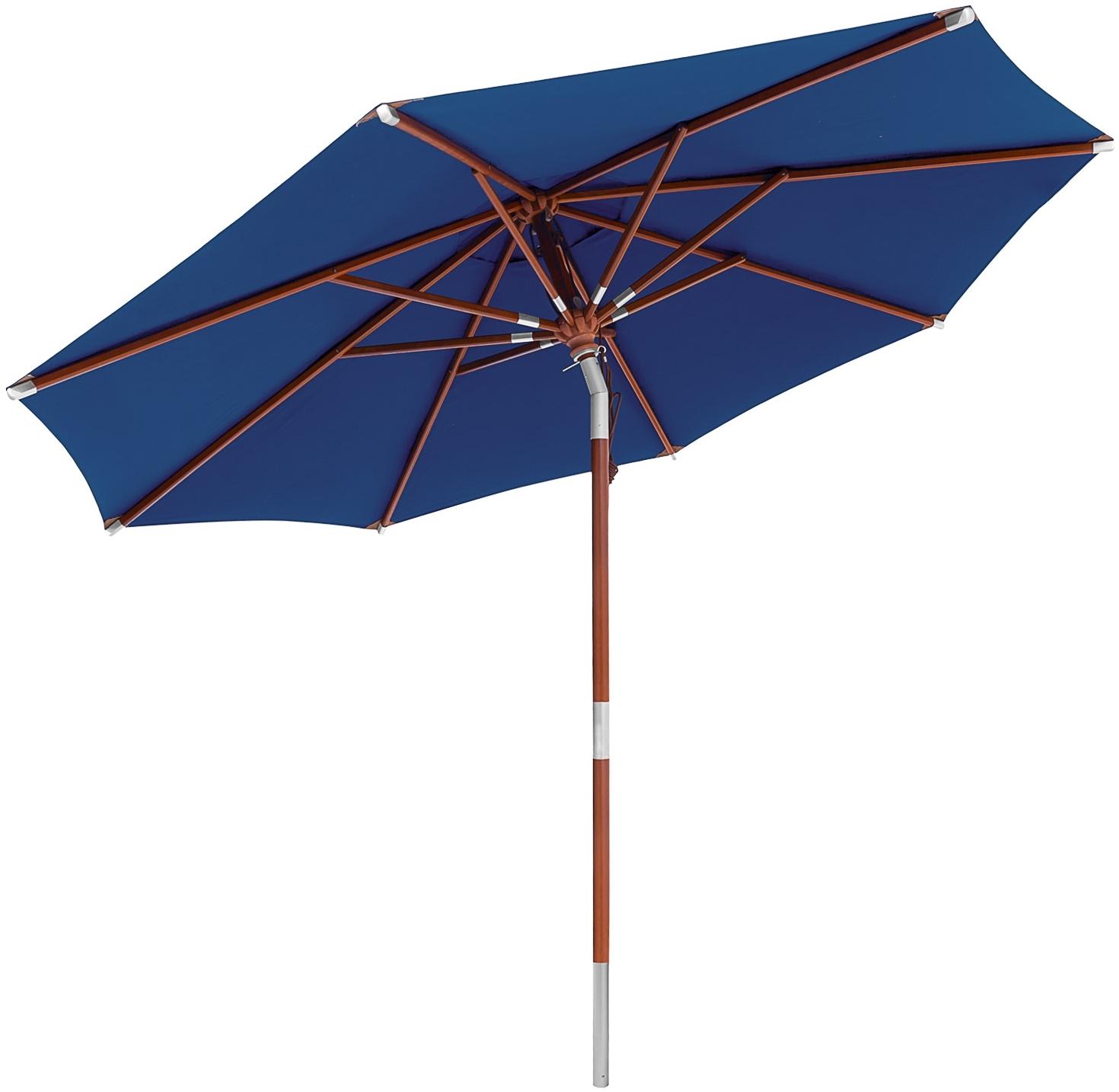 Genießen Sie den Sommer unter dem anndora Sonnenschirm in Navy Blau. Mit einem Durchmesser von 3 m und einem integrierten Dreh-Kipp-Mechanismus bietet er optimalen Sonnenschutz und lässt sich leicht anpassen. Der stabile, zweiteilige Stamm aus indonesischem Hartholz und die wetterfeste Polyester-Beschichtung garantieren Langlebigkeit und Widerstandsfähigkeit. Ideal für Balkon, Terrasse oder Garten. **Highlights** - Dreh-Kipp-Mechanismus für individuellen Neigungswinkel - Wetterfeste Beschichtung schützt vor Regen - UV-Schutz mit einer Absorption von bis zu 97,5% - Hochwertiger, stabiler Stamm aus indonesischem Hartholz - Schmutzabweisender und farbbeständiger Sonnenschirmstoff **Produkteigenschaften** - Durchmesser: ca. 3 m - Höhe: ca. 2,7 m - Durchgangshöhe: ca. 2 m - 2,3 m - Schließhöhe: ca. 100 cm - Gewicht: ca. 10 kg - Stoffstärke: 235 g/m² - Stamm-Durchmesser: 48 mm - Anzahl der Streben: 8 Stück - Maße langes Strebenstück: ca. 2 x 2,8 x 150 cm - Maße kurzes Strebenstück: ca. 2 x 2,8 x 66,5 cm - Aluminiumhülse: Höhe ca. 35 cm **Lieferumfang** - Sonnenschirm mit Dreh-Kipp-Mechanismus mit einem Durchmesser von 3 m