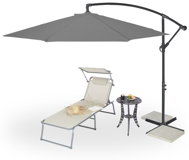| Beschreibung | Genießen Sie unbeschwerte Tage im Garten oder auf der Terrasse mit unserem Ampelschirm D: 300 cm. Der Sonnenschirm lässt sich leichtgängig mit einer Kurbel öffnen und schließen und ist stufenlos neigbar. Er bietet einen großen Sonnenschutz und wird mit einer wasserabweisenden Schutzhülle geliefert. **Highlights** - Großer Sonnenschutz für Garten, Terrasse oder Pool - Wasserabweisender Schirmstoff mit UV-Schutz 30+ - Stufenlos neigbar für individuelle Ausrichtung - Leichtgängige Kurbel zum Öffnen und Schließen - Stabiler Stand dank kreuzförmigem Ständer **Produkteigenschaften** - Maße (H x D): 250 x 300 cm - Durchgangshöhe: 210 cm - Gewicht: ca. 11,2 kg - Material: Polyester, Aluminium, Kunststoff - Farbe: Grau - Grammatur Schirmstoff: 180 g/m² - Grammatur Schutzhülle: 160 g/m² - Standfuß Maße: 4,5 x 99 x 99 cm - Bodenplatten Maße: 4 x 48 x 48 cm **Lieferumfang** - 1x Ampelschirm in Einzelteilen - Anleitung und Montagematerial enthalten - Dekoartikel und Beschwerungsplatten nicht im Lieferumfang enthalten |