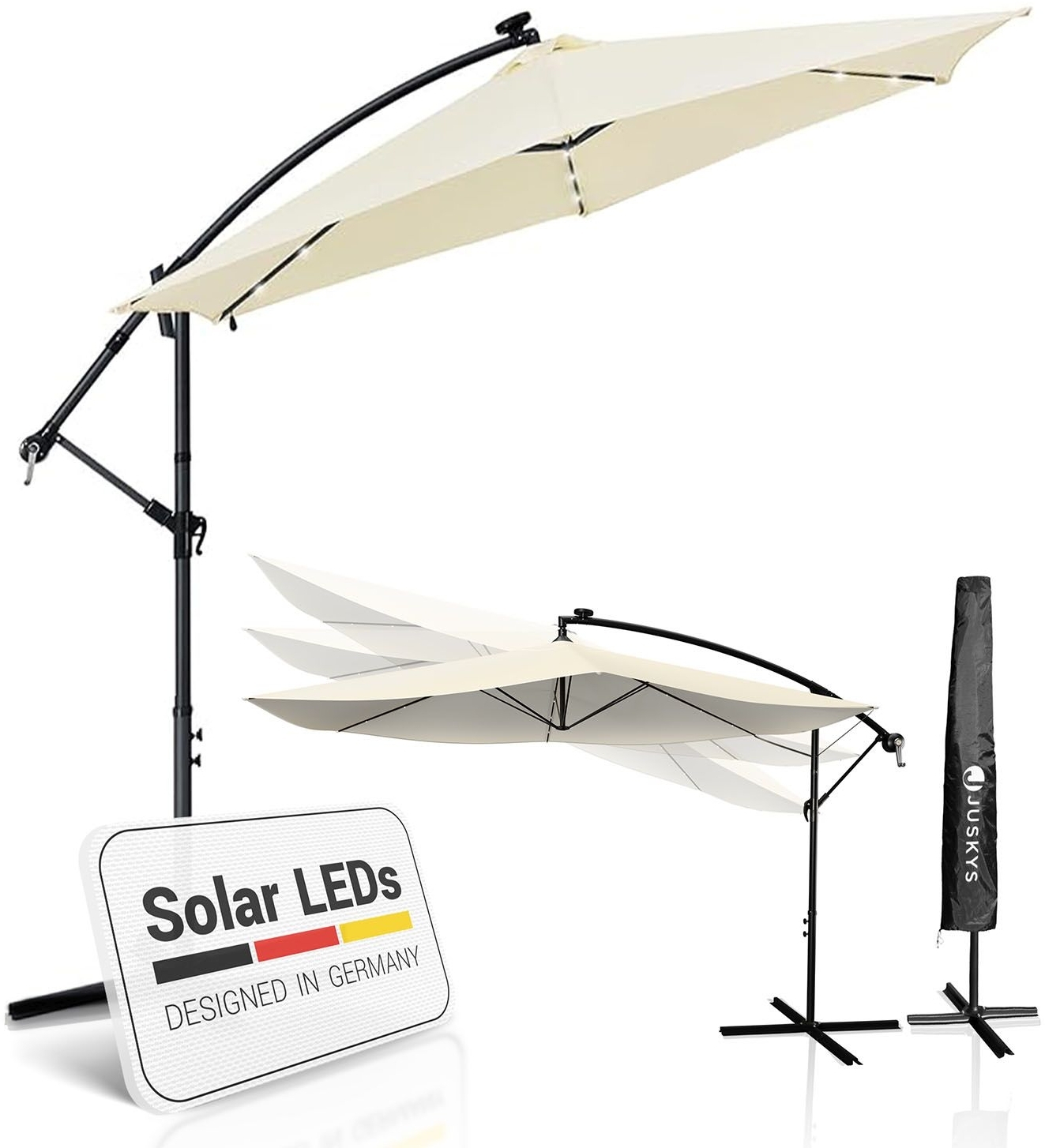 | Name | Juskys 'Brazil' Sonnenschirm, Polyester, Grau / Creme, Ø 330 cm, mit Beleuchtung |